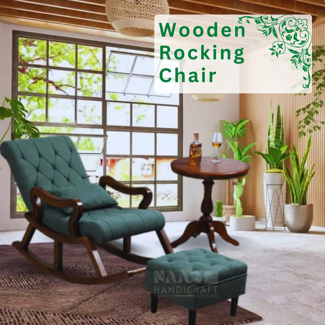 Meticulously crafted from pure Sheesham wood, this chair is designed to cater to the discerning tastes of adults who seek luxury and durability. The built-in footrest ensures optimal relaxation, while the accompanying pillow provides extra support and comfort. Elevate your home decor with the natural beauty and exquisite craftsmanship of this rocking chair from the Naaz Handicraft, where every detail is designed to enhance your lounging experience.