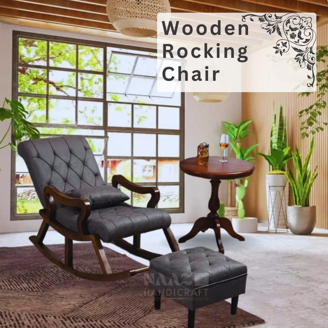 Meticulously crafted from pure Sheesham wood, this chair is designed to cater to the discerning tastes of adults who seek luxury and durability. The built-in footrest ensures optimal relaxation, while the accompanying pillow provides extra support and comfort. Elevate your home decor with the natural beauty and exquisite craftsmanship of this rocking chair from the Naaz Hnadicraft, where every detail is designed to enhance your lounging experience.