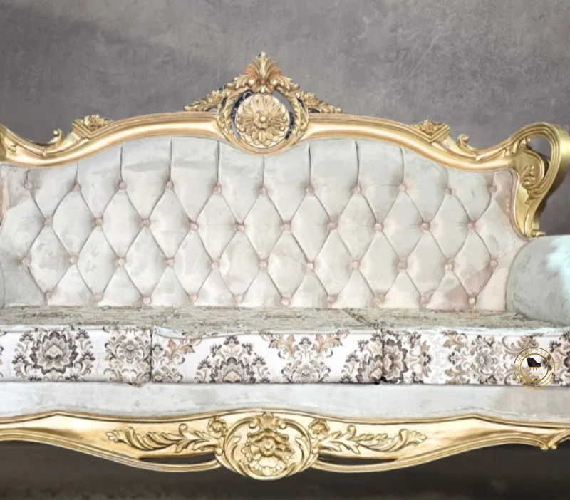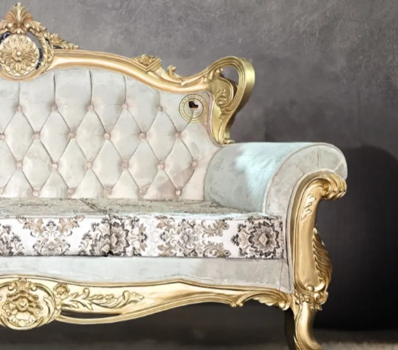 Golden Finish 3 Seater Wooden Sofa for Living