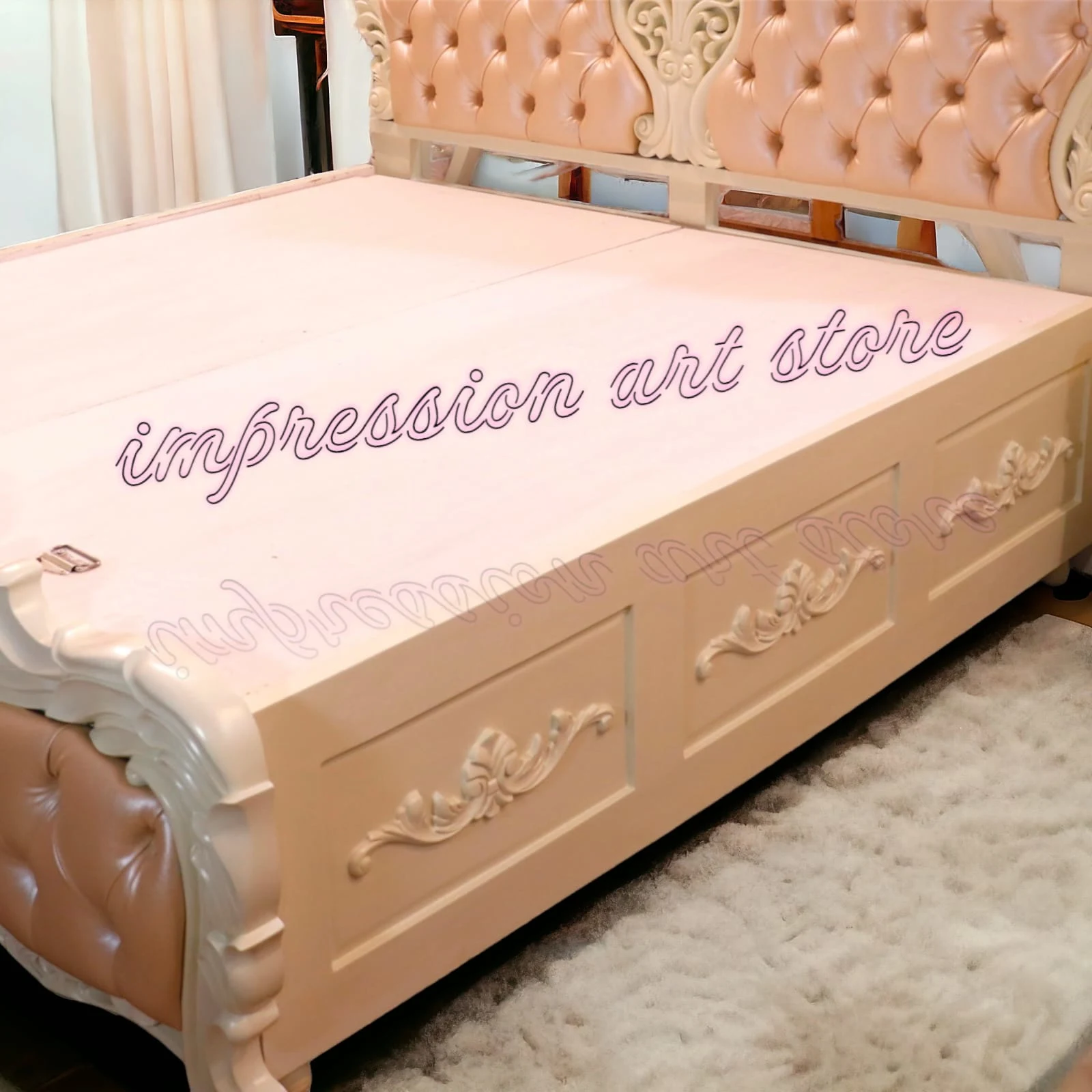 Discover the magic of intricate carvings that add a touch of royal charm to your space. Every curve and detail is hand-crafted with love and care. Imagine waking up to this breathtaking piece of art every morning.