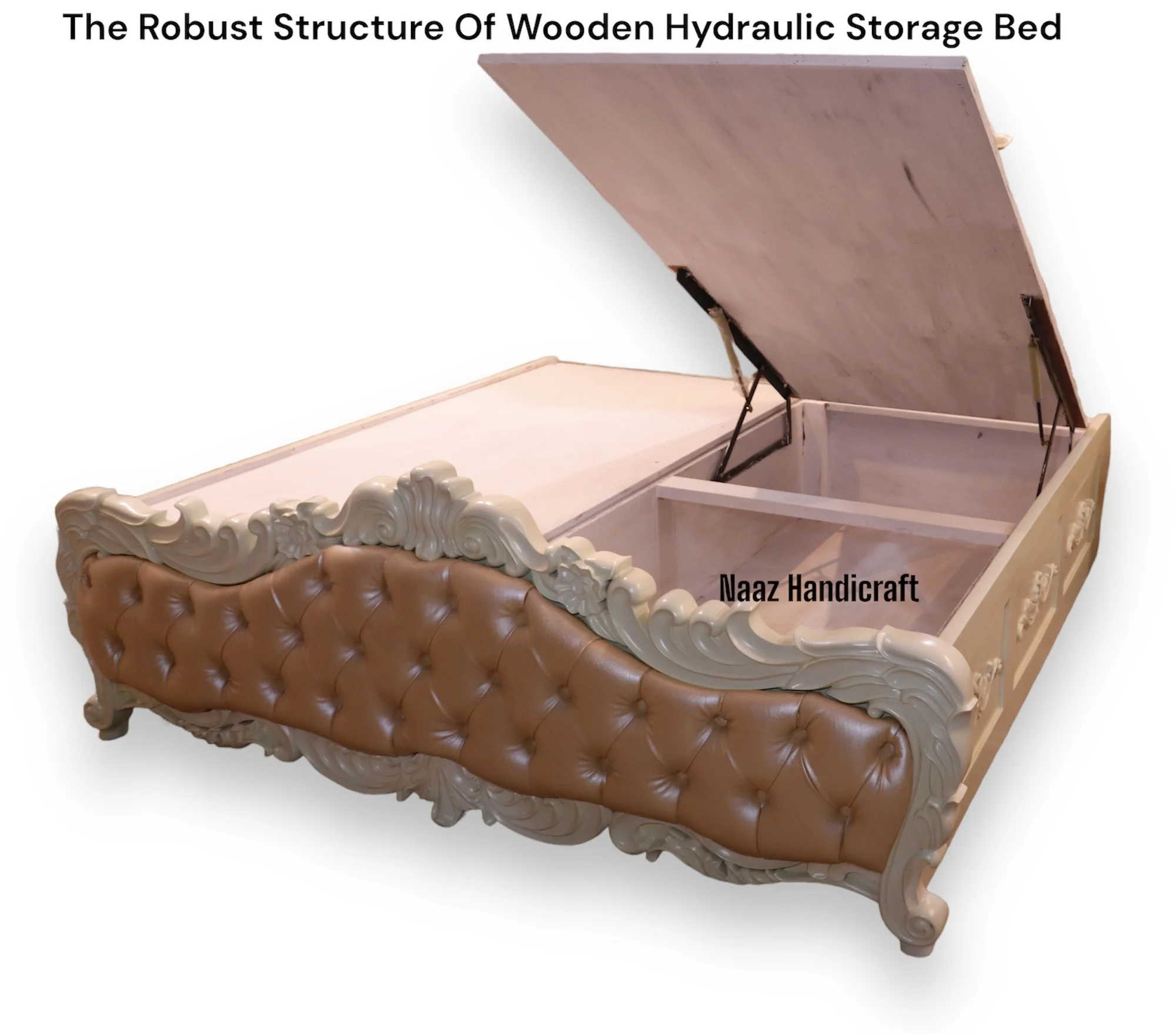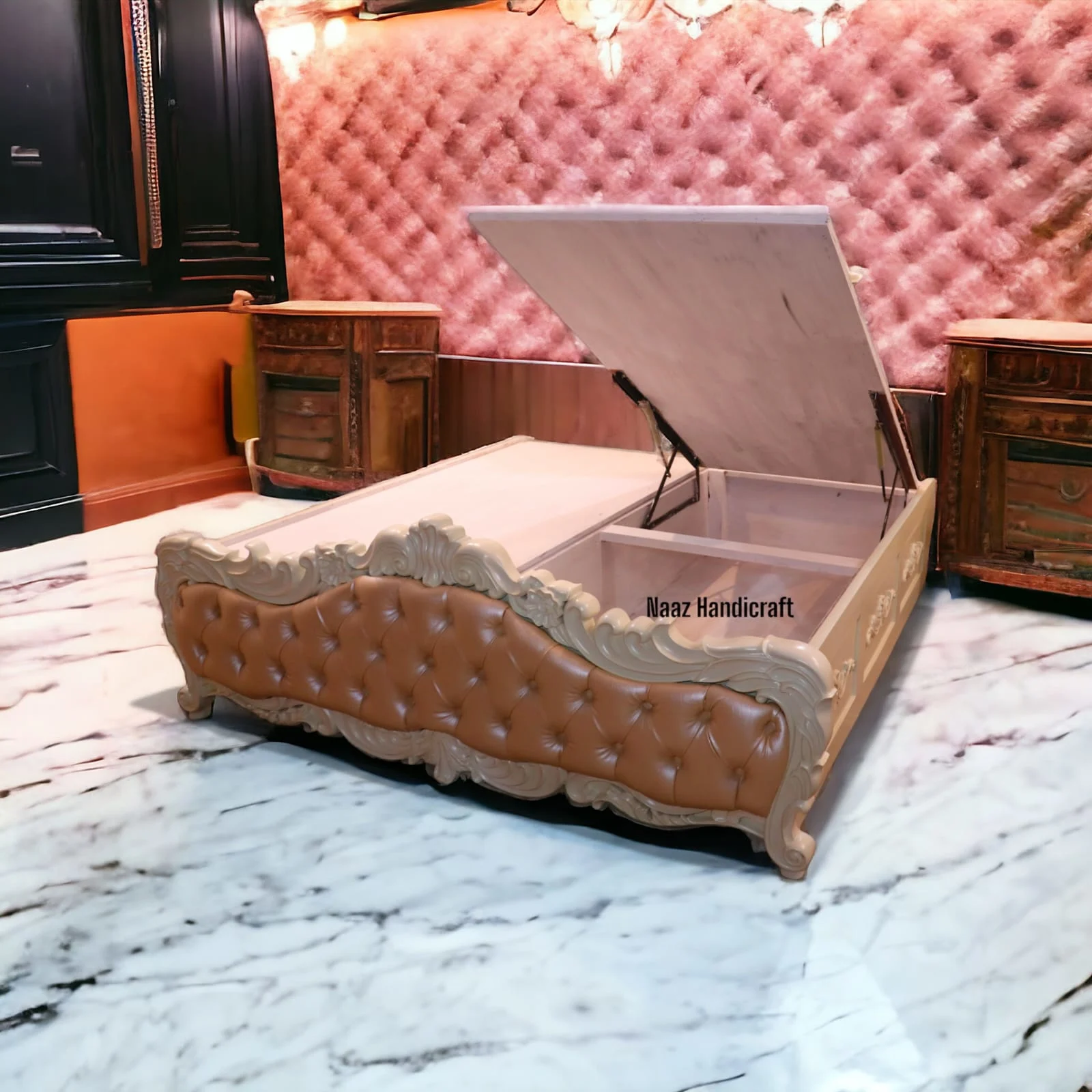 Naaz Handicraft Carved Wooden Storage Bed Elegant